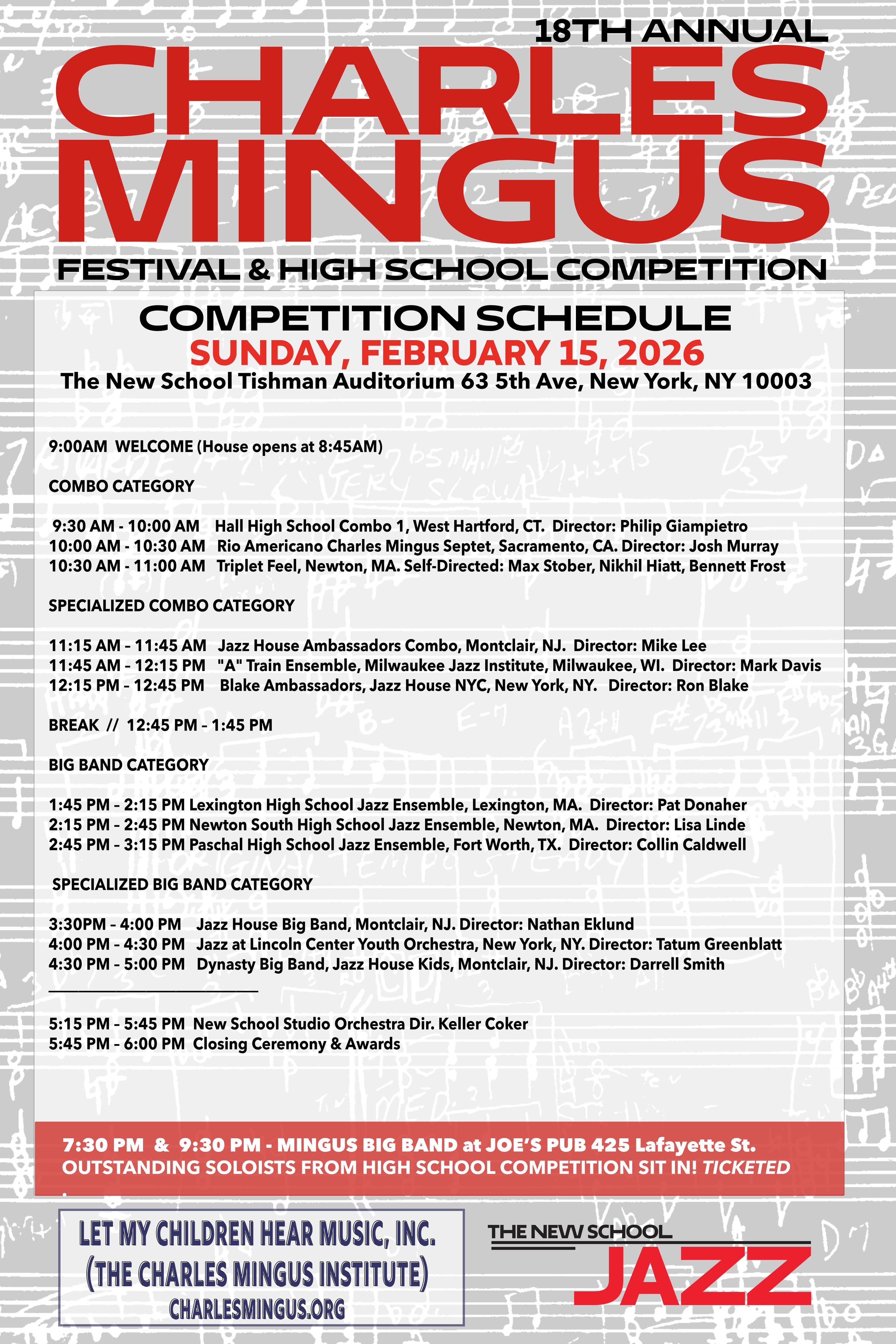 I am confident that both Charles and Sue Mingus (who started this competition 18 years ago) would have been deeply pleased by the seriousness, respect, and imagination these young musicians are bringing to the music. Mingus always encouraged young voices and fearless expression, and it is on full display this year. Big respect to Roberto Ungaro for continuing to steward both Charles’ and his mother Sue’s legacy, and for creating opportunities that challenge and inspire the next generation.”
